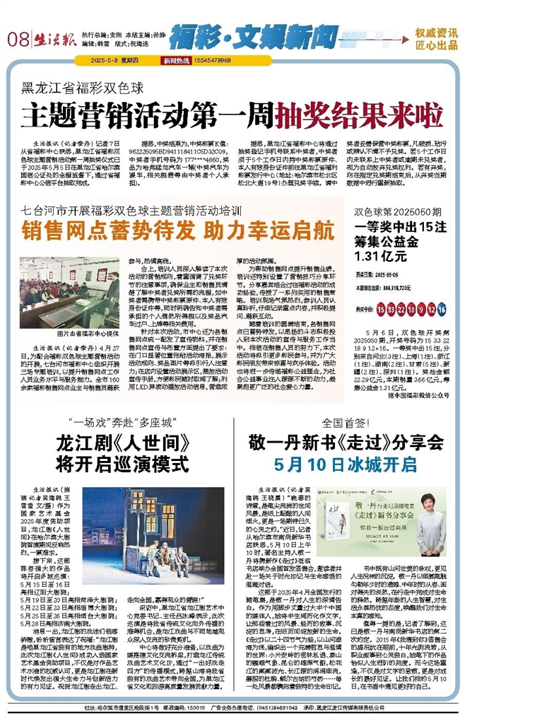 生活报讯 (记者李丹) 记者7日从省福彩中心获悉,黑龙江省福彩双色球主题营销活动第一周抽奖仪式已于2025年5月5日在黑龙江省哈尔滨国信公证处的全程监督下,通过省福彩中心公信平台抽取完成。