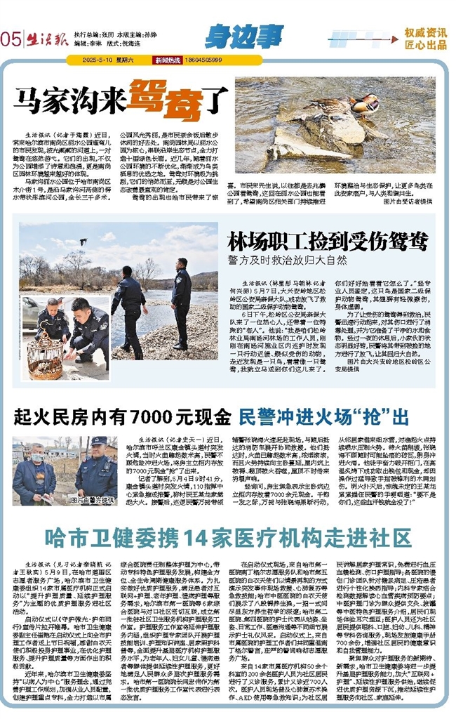 生活报讯 (林星彤 马朝林 记者何兴丽) 5月7日,大兴安岭地区松岭区公安局森保大队,成功放飞了救助的国家二级保护动物鸳鸯。