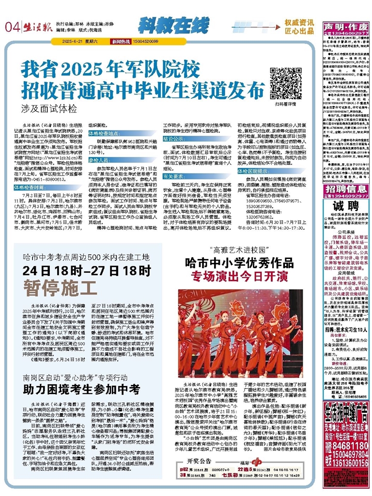 生活报讯 (记者于海霞) 近日,哈市南岗区启动“爱心助考”专项行动,联动社会力量为困境考生铺就一条条“圆梦之路”。