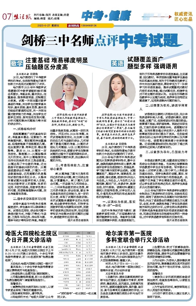 26日,哈尔滨进行了中考英语学科的考试,生活报特邀哈尔滨市剑桥三中名师对试题进行了点评。